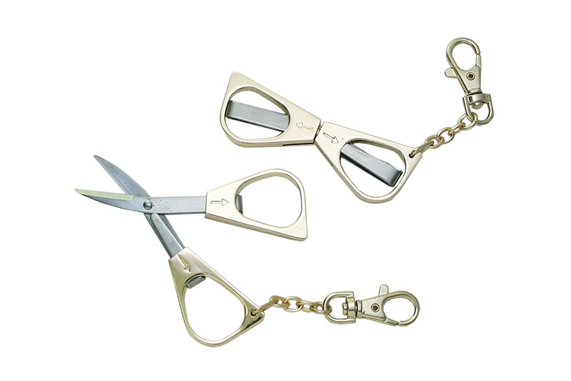 The KB-651 folding scissors feature stainless steel construction with gold tone on handles. Perfect for the car, sewing kit, fishing tackle box, utility drawer, office desk, key ring, purse, or any other convenient place you might need them. These have a convenient key chain-style clip to hang where you need them.