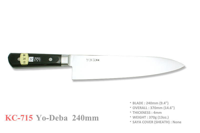 The KC-715 Yo-Deba features a NKS32 high carbon steel blade and a wood handle with steel bolster.