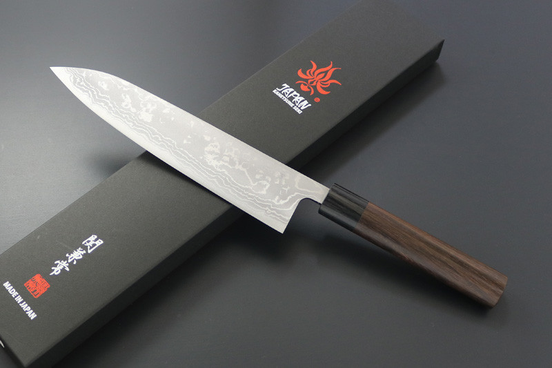 The KC-742 Gyutou features a carbon steel blade with wood handle, and stainless steel bolster. This powerful Japanese-style chef knife is formidable, as its razor-sharp edge delivers uniformly-chops, slices, and minces. Perfect for a variety of vegetables, fruit, herbs, and meats, this knife is sure to be a favorite.